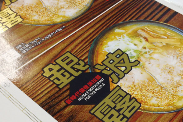 印刷物の表面にニスを塗り、光沢感やマット感を出す。部分的にニスを引く事も可能。