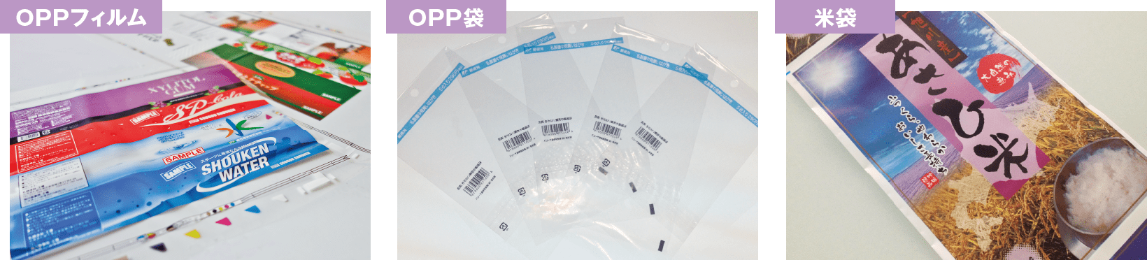 OPPほか様々な基材に印刷でき軟包装材料等の作成が可能。