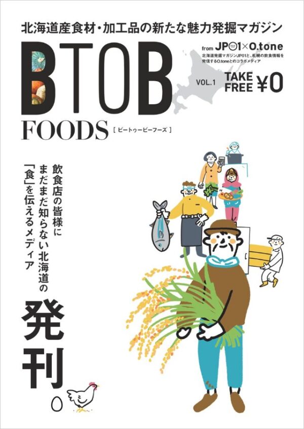 本誌は、北海道の生産者とのつながりが強い「JP-01」(当社発行)と、札幌を中心とした飲食店とのつながりが強い「O.tone(オトン)」(株式会社あるた出版発行)がコラボし、生産者やメーカーと飲食店などの実需者がつながることを願って作った新メディアです。