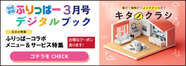 ・3月号の巻頭特集のテーマは「キタノクラシ」。長かった冬も終わり、春の息吹が感じられるようになったいまこそ、お家のメンテナンスをしましょう!ふりっぱーでは、春のお掃除のポイントをプロならではの視点から紹介。リフォームや不用品買取など、お家に関する情報も盛りだくさんです!